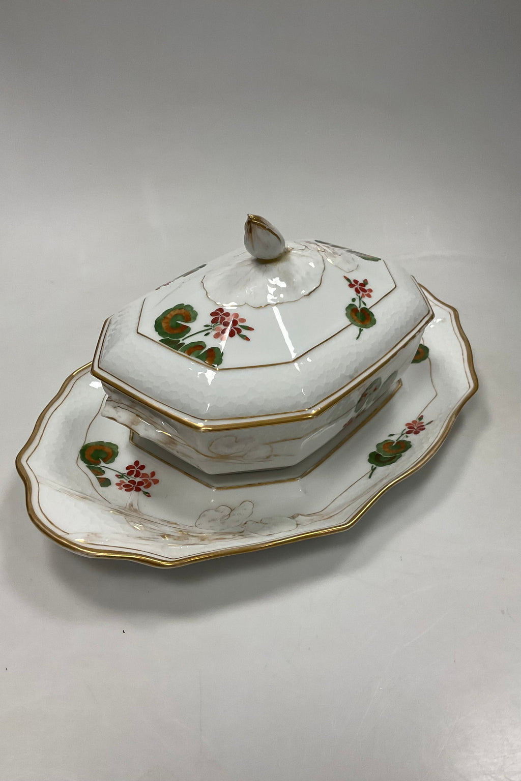 Royal Copenhagen Art Nouveau Stel No. 225 Pelargonie Terrin med fad No. 2038 / 2040