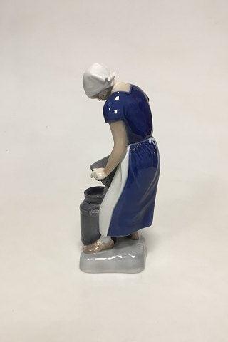 Bing og Grøndahl Figur af Pige med mælkespand No. 2181. Måler 20 cm. Signeret Axel Locher.