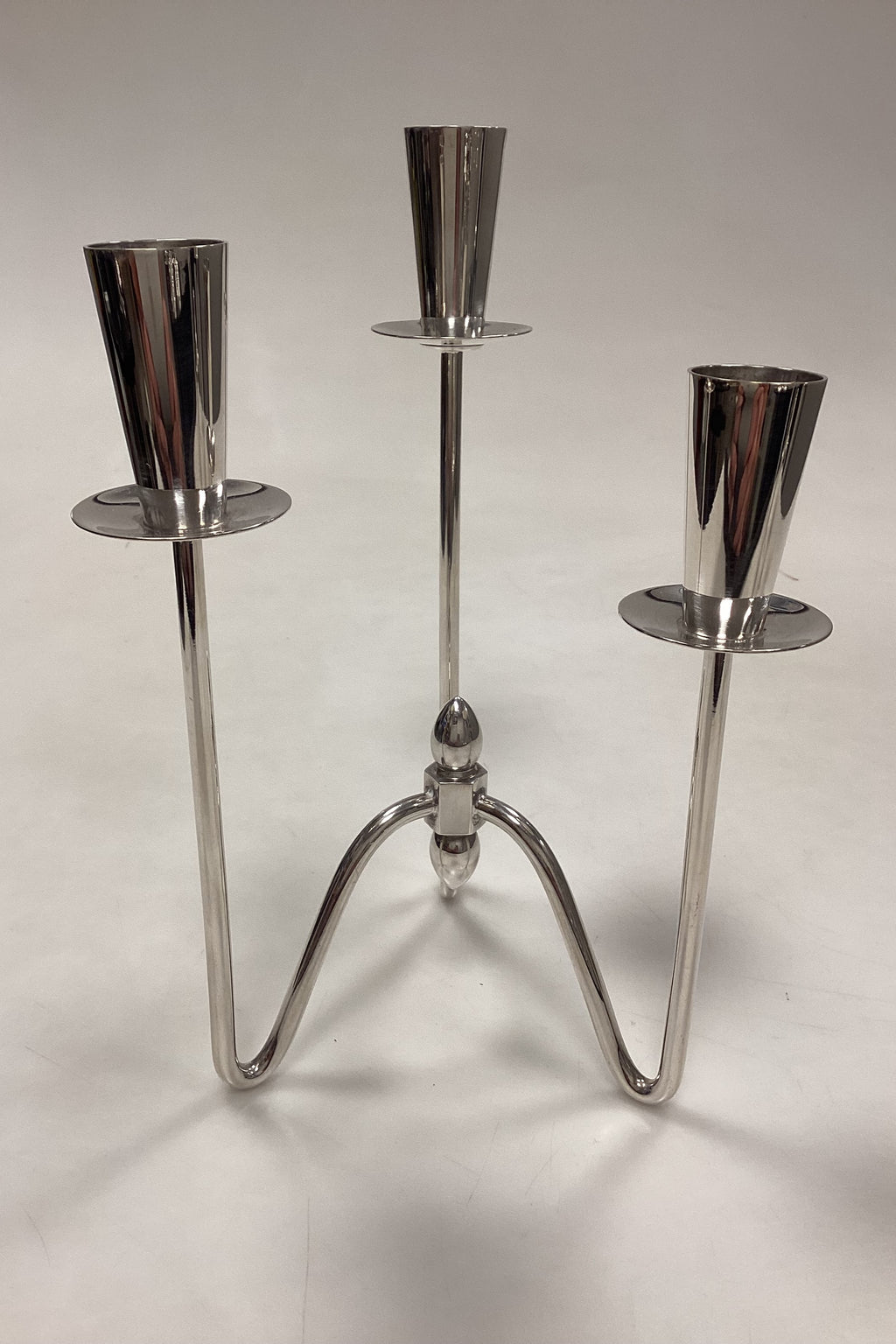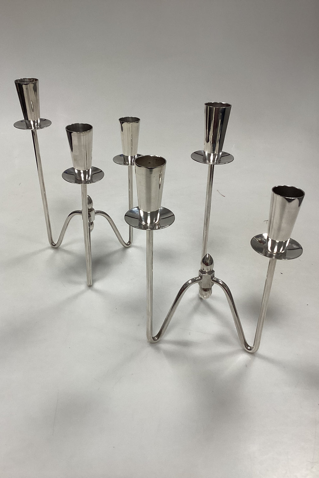 Par trearmede Lysestager i Sølvplet af Johannes Berg