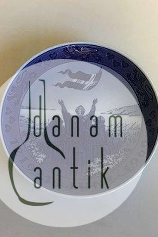 Valdemar-platte. Dannebrog falder fra himlen under slaget ved Reval. Indskrift: 1219 - 15 JUNI - 1969. Fremstillet i anledning af 750-års dagen for flagets modtagelse. Tegnet af Kaj Lange