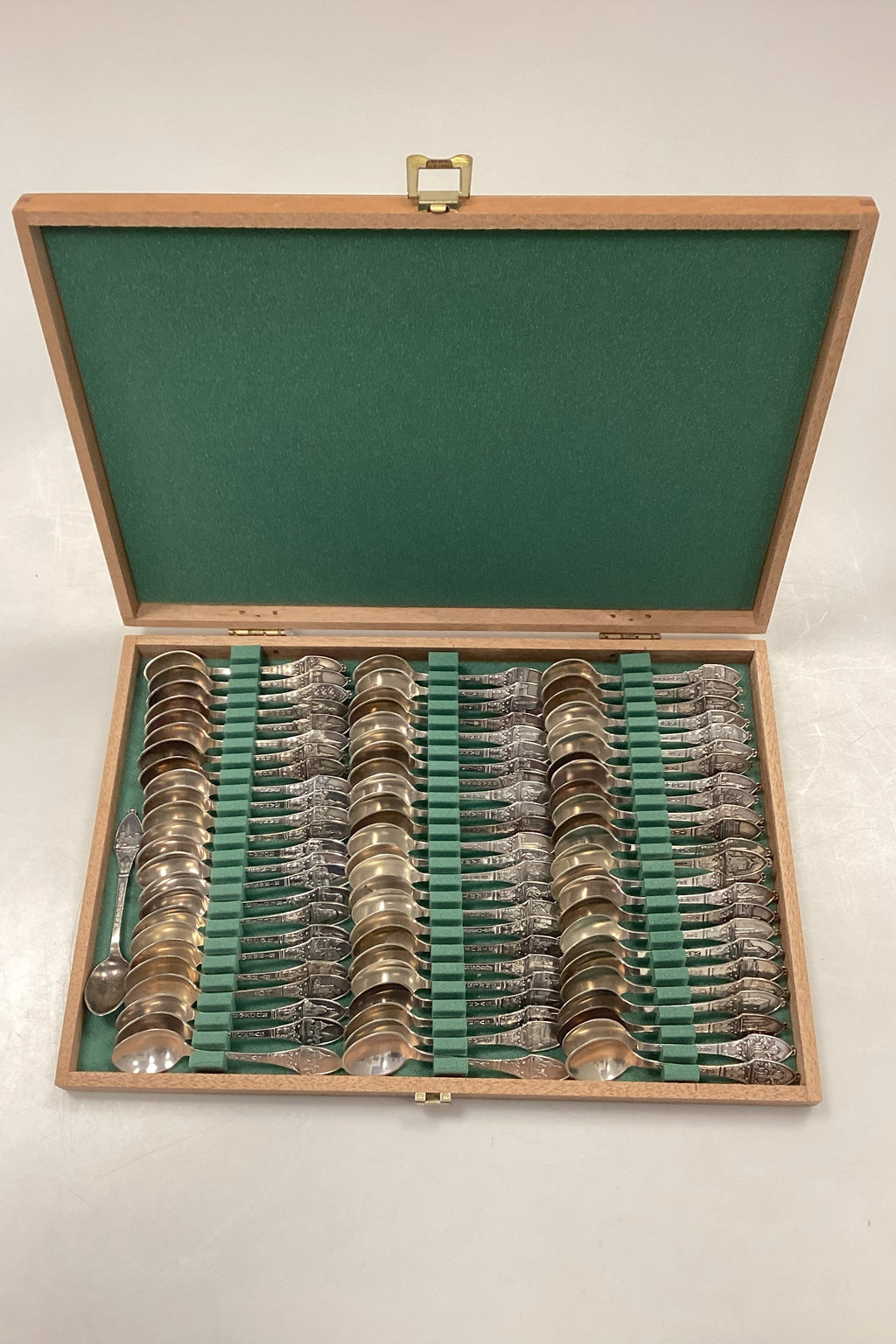 217 styk blandede skeer fra forskellige byer, samlet i 3 samlekasser i træ.