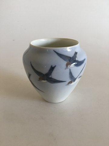 Tidlig Bing and Grøndahl Unika vase med Svaler af Effie Hegermann-Lindencrone. Måler 10cm høj og er i perfekt stand.