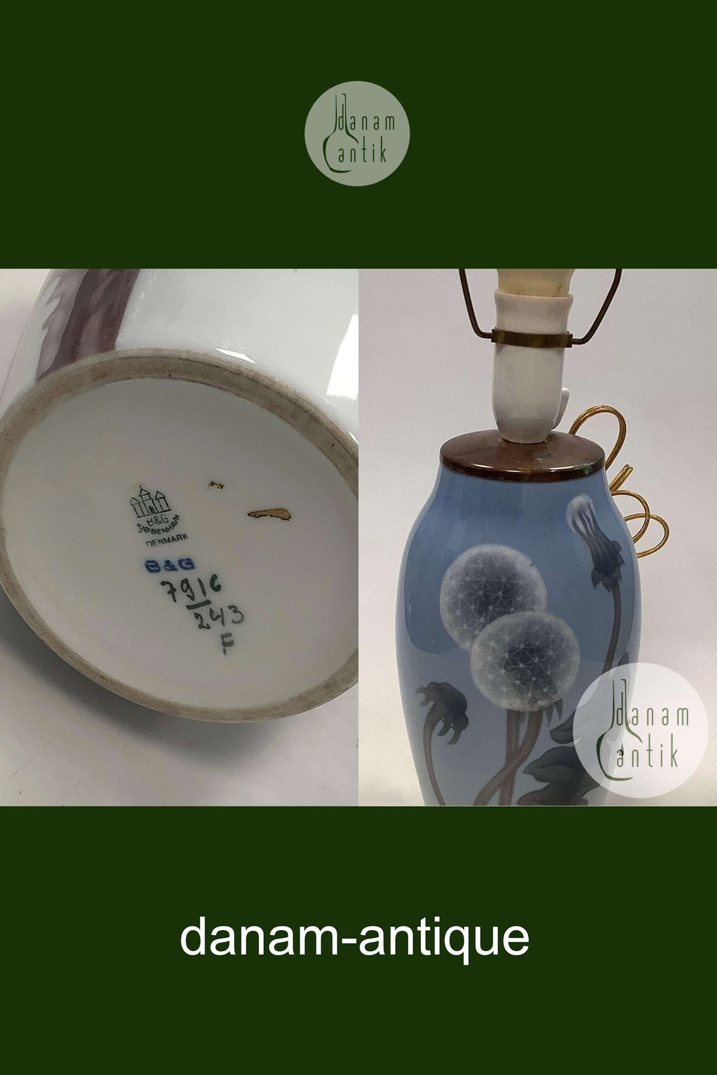 Bing og Grøndahl Art Nouveau Vase / Lampe med Mælkebøtter No. 7916 / 243