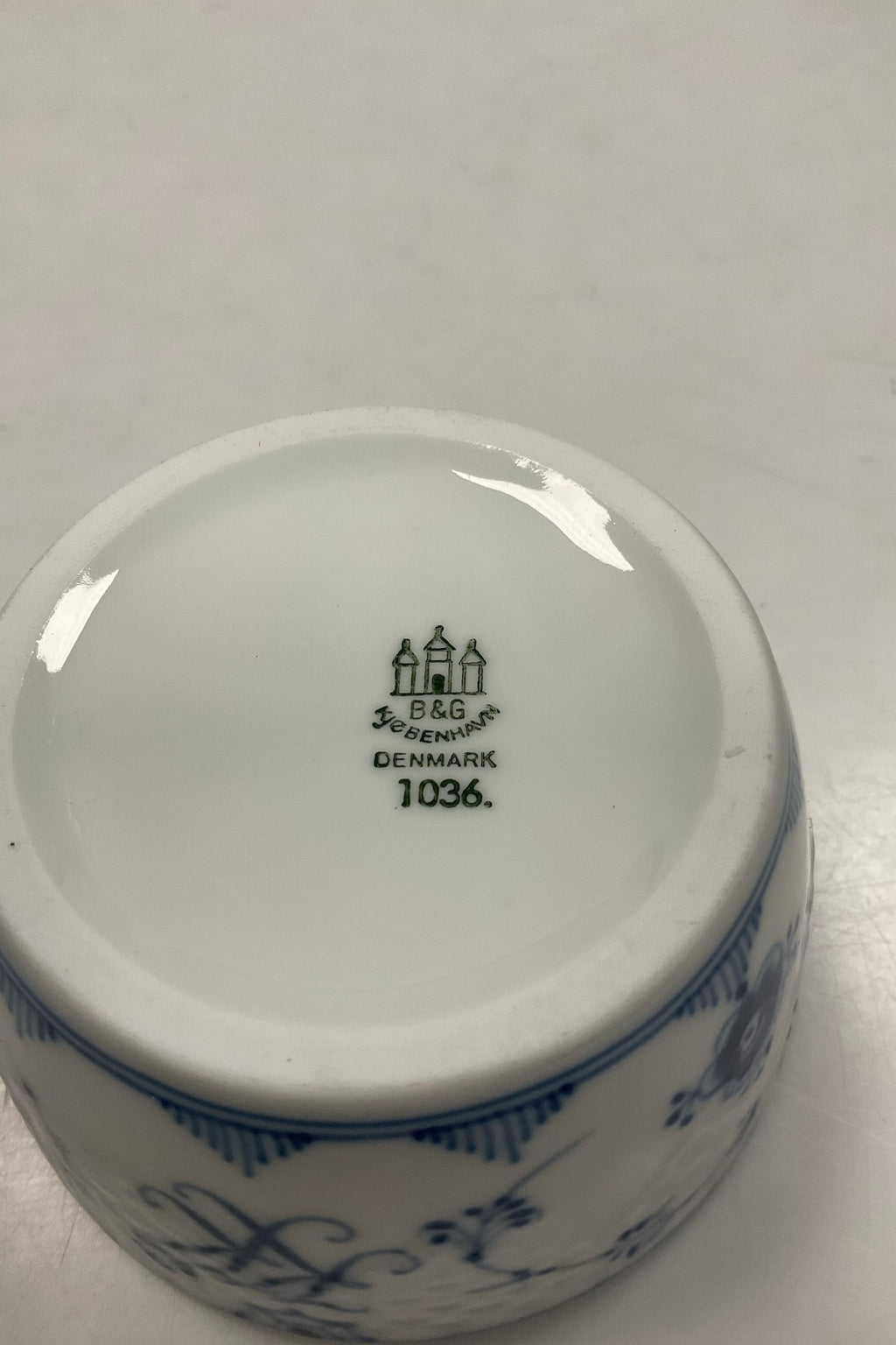 Bing og Grøndahl Blåmalet / Musselmalet Oliven Skål No. 1036 med monogram