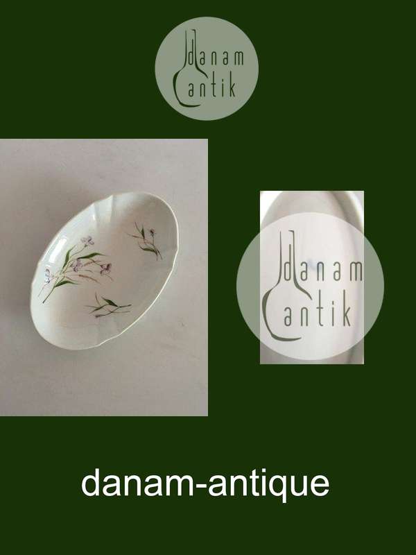 Bing & Grøndahl Ovalt Sættefad med Lilla Blomst. 23 cm
