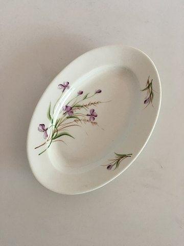 Bing & Grøndahl Ovalt Serveringsfad med Lilla Blomst. 25 cm