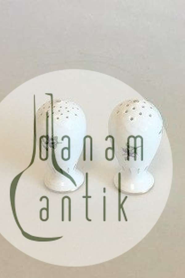 Bing & Grøndahl Saksisk Blomst, Hvid Salt -og Pebersæt. Måler 7 cm