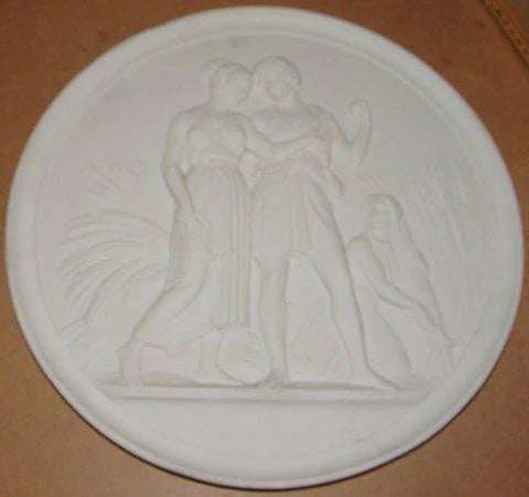 Royal Copenhagen Biscuit Platte Barndom og Forår No 117. Kopi fra 1842-43 af N.G.Henriksen efter Thorvaldsens original fra Rom 1836. Måler 35cm