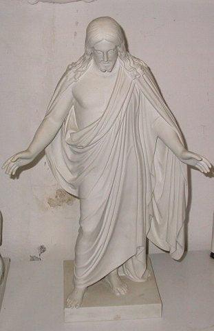 BERTEL THORVALDSEN : Stor figur af Kristus i bisquit fra Royal Copenhagen. Mindre deffekt på et par fingre. 50 cm høj