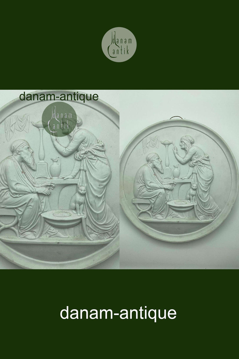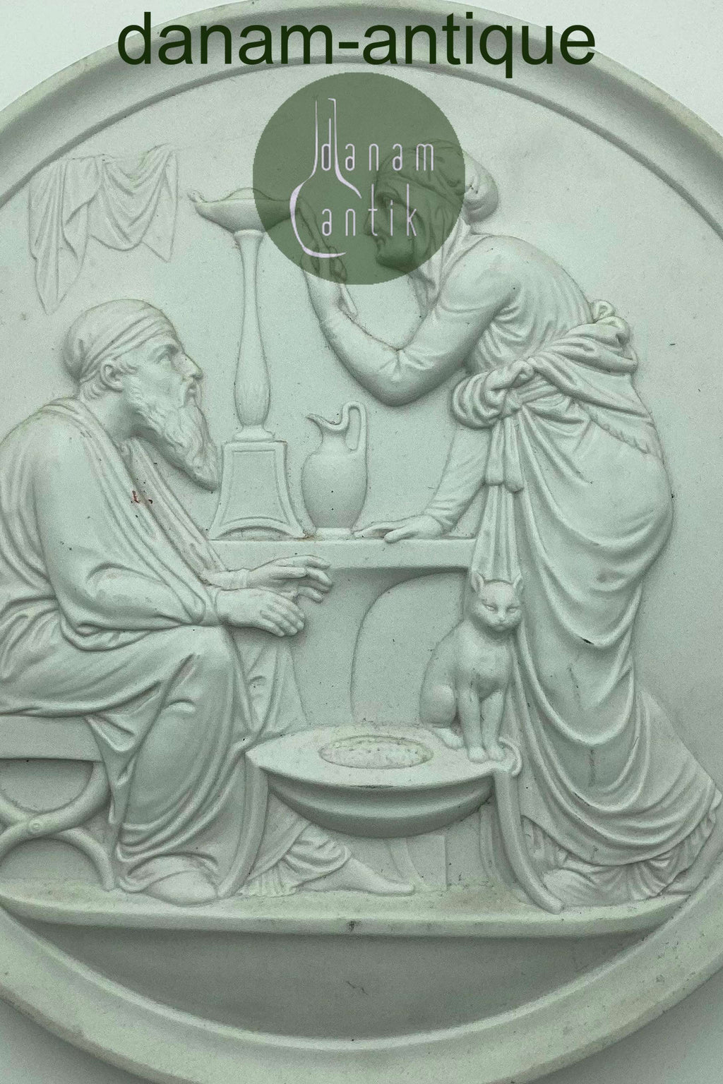 Bertel Thorvaldsen: Bing og Grøndahl bisquit platte "Alderdom og vinter" Efter relief modelleret i Rom 1836. Måler 29cm (11.41 inch). Fremstillet i slutningen af 19. århundrede.