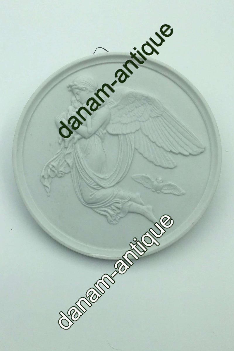 Bertel Thorvaldsen bisquit platte Bing og Grøndahl "Natten" No. 123. Efter relief modelleret i Rom 1815. Måler 14cm (5.51 inch). I god stand. Fremstillet efter 1950
