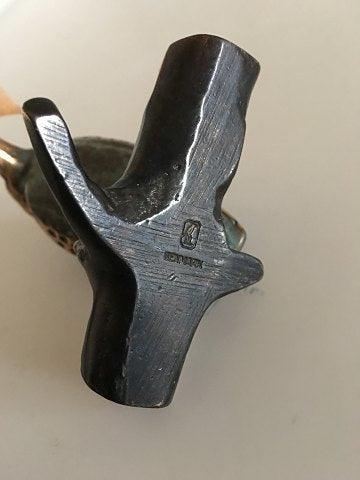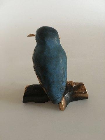 Stiig Kalsing Bronze Figur af Isfugl med Fisk. 7.5 cm Høj.