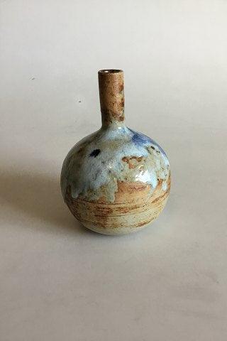 Conny Walther Kugleformet Stentøjsvase med med høj hals. Måler 14 cm