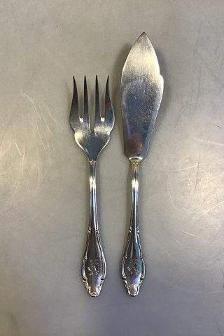 Tysk Plet Fiskebestik til 8 Pers samt Serveringsdele (Alle dele med gravering) Gaffel 18.3 cm Kniv 20.5cm Serveringsdele 21.5 og 25.5 cm