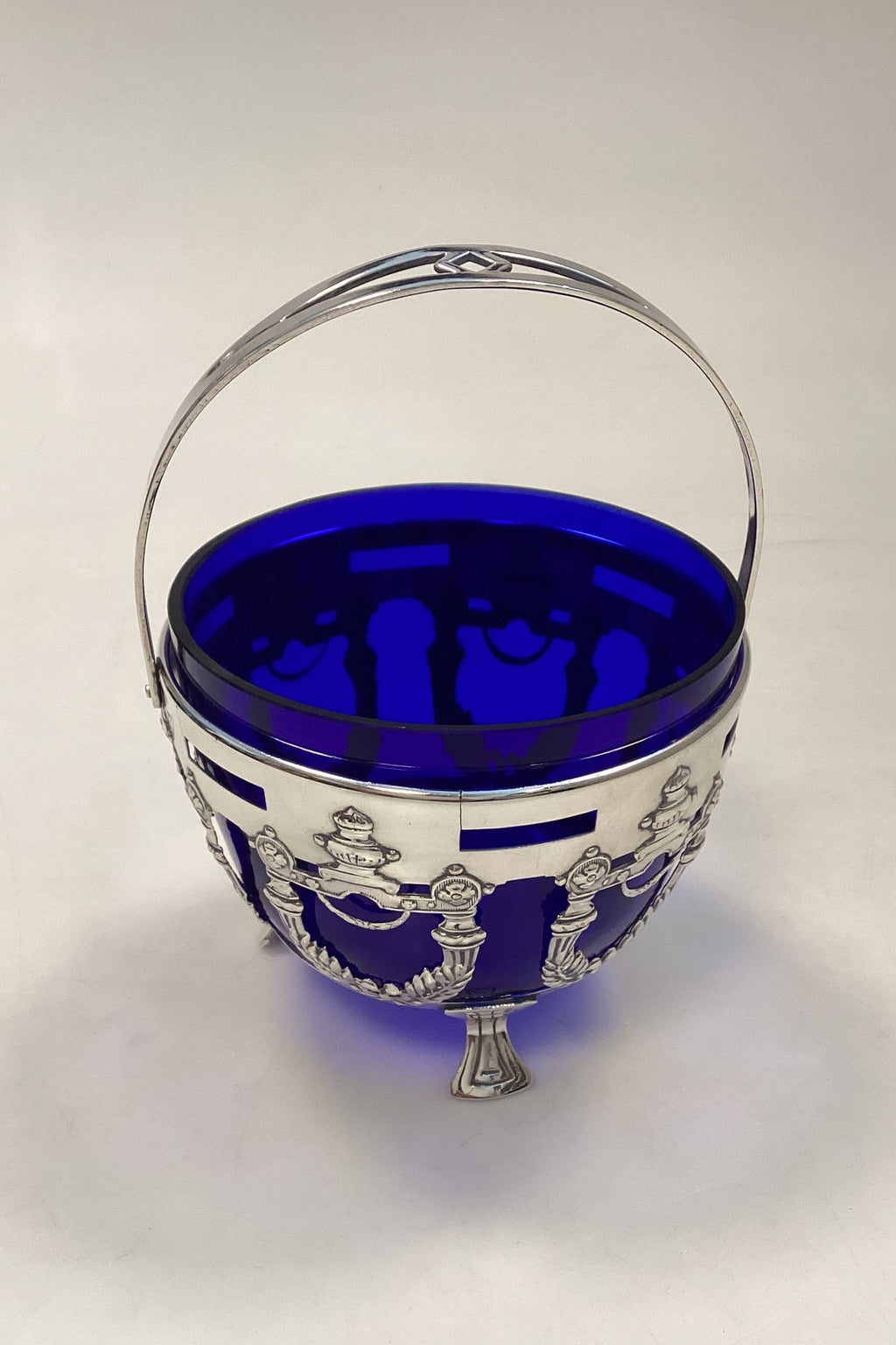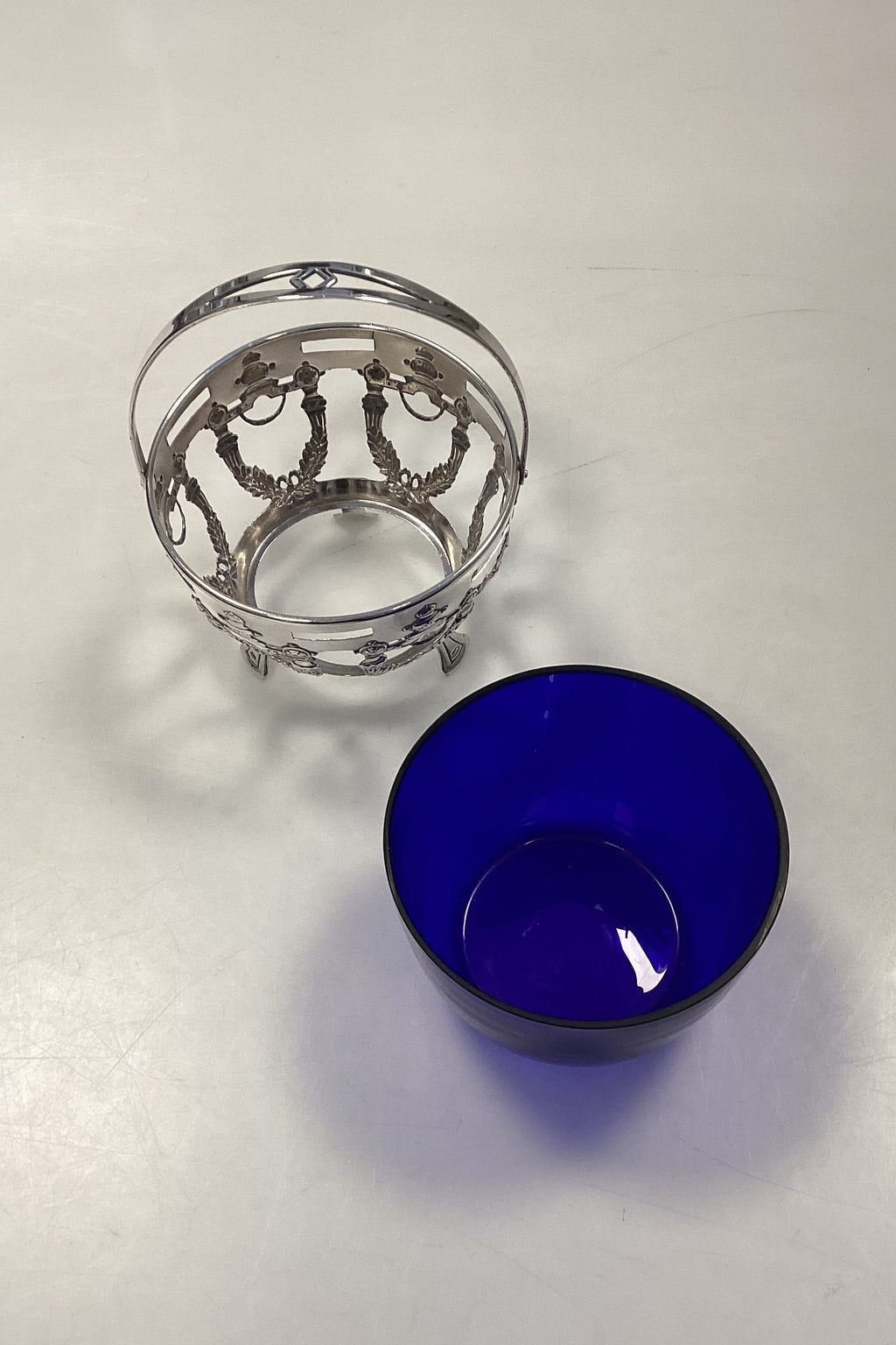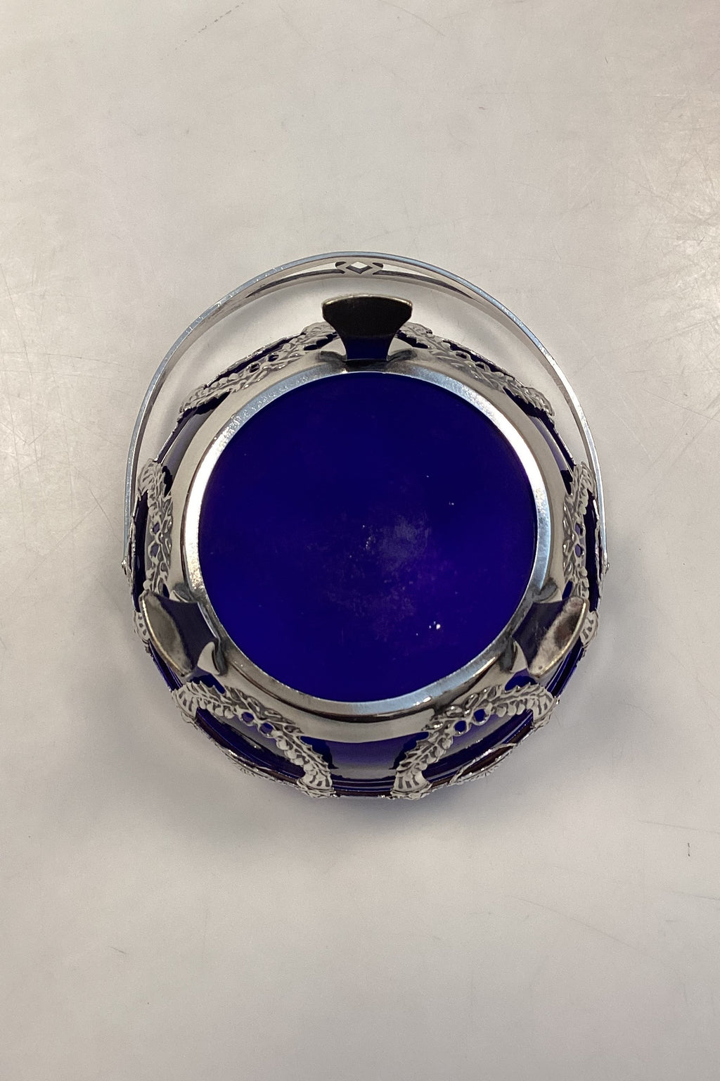 DFA Sukker / kandis Bowl i sølvplet med blå glas indsats