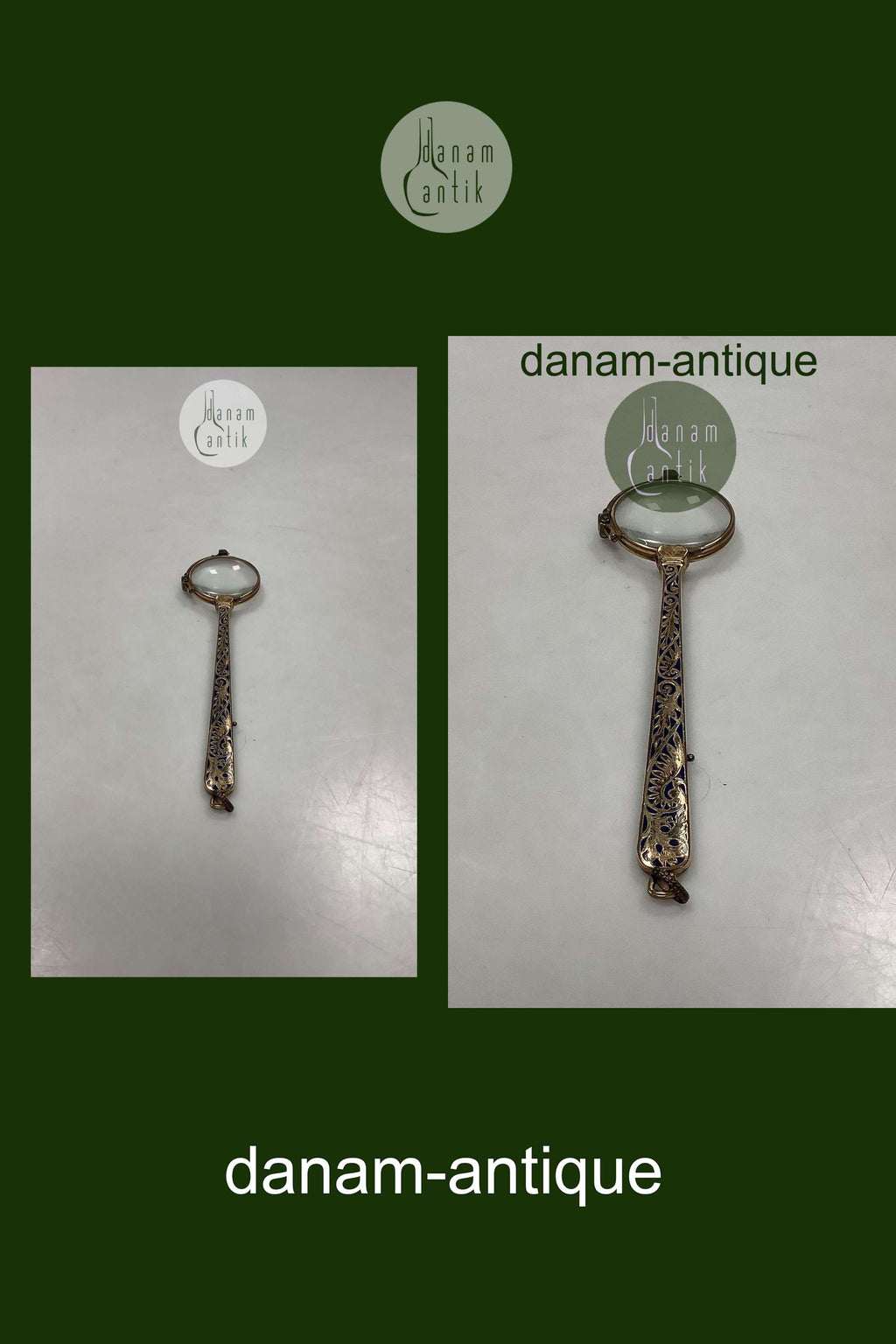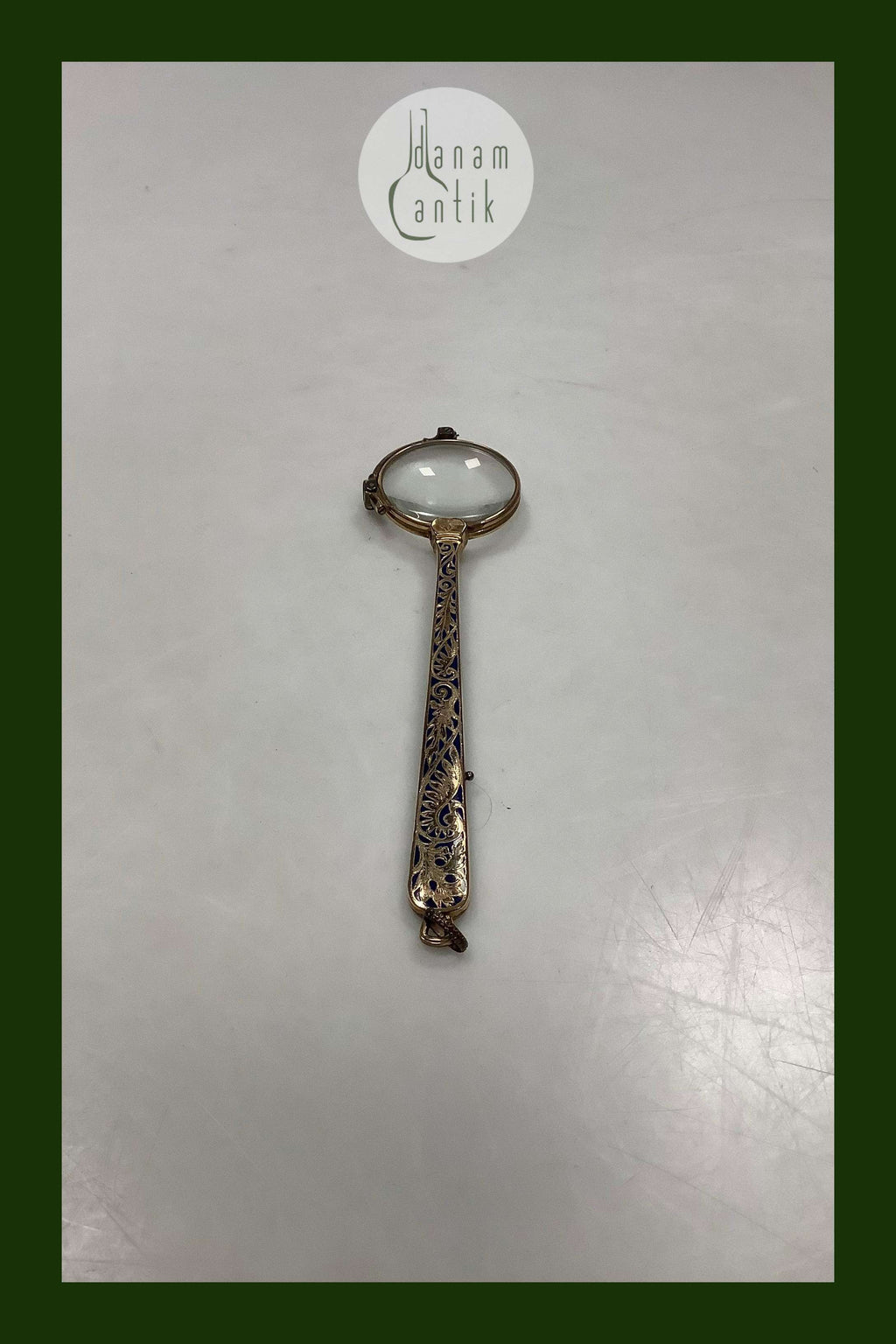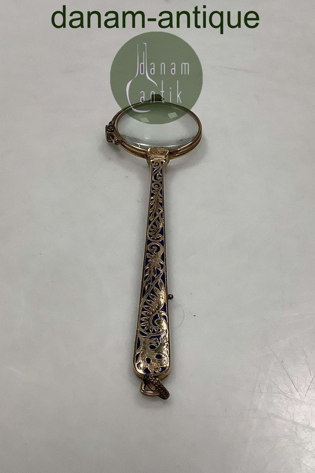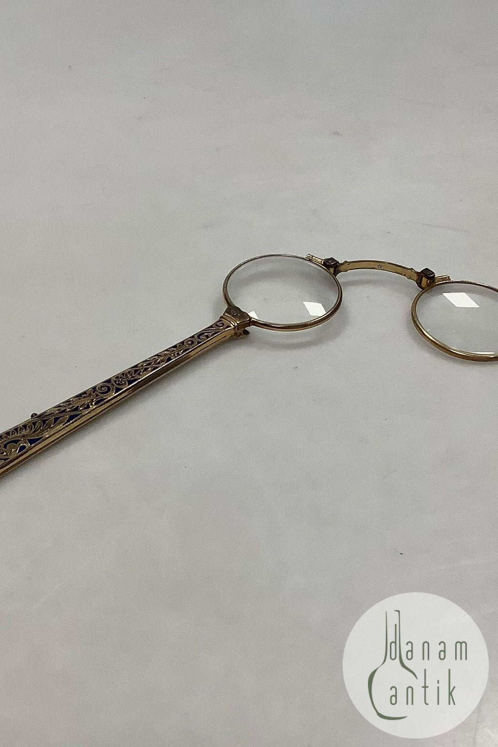 Lorgnette Glas Briller i gyldent metal og Emalje arbejde