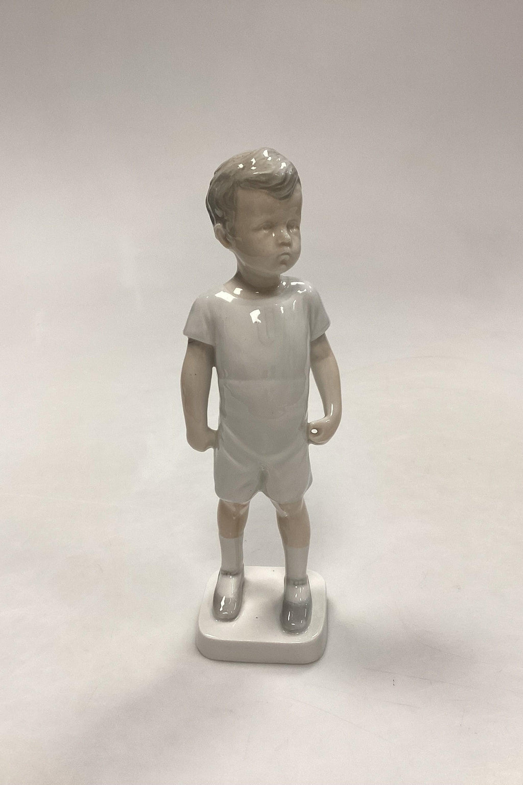 Bing og Grøndahl Figur af drengen Kaj No. 1617. Måler 20 cm / 7.88 in. Designet af Ingeborg Plockross Irminger. Sjælden figur lavet i tiden efter 1. Verdenskrig. Mangler blå farve i drengens tøj.