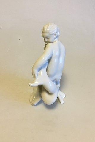 Bing & Grøndahl Blanc de Chine Figur af Dreng der holder på delfin No 4060