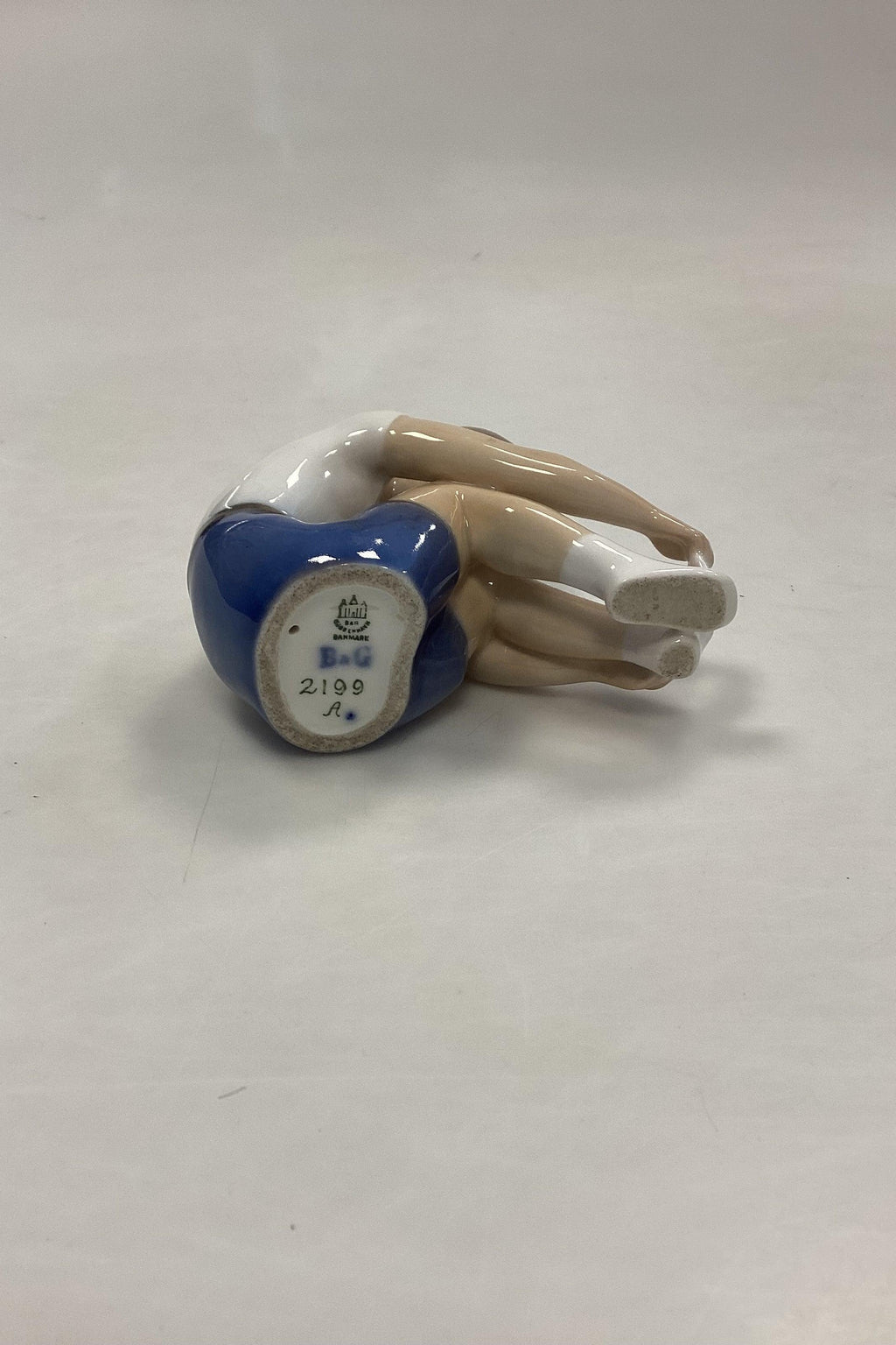 Bing og Grøndahl Figur Dreng tager sok af No. 2199. Måler 9,5 cm x 8,7 cm / 3.75 in. x 3.43 in.