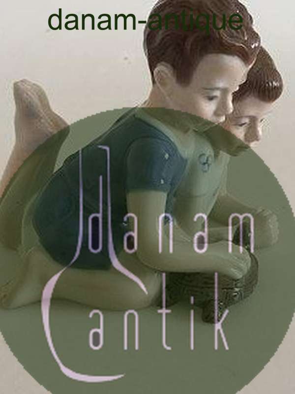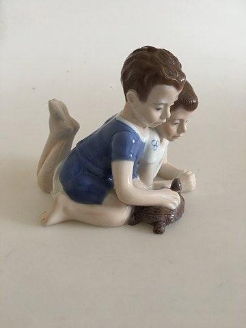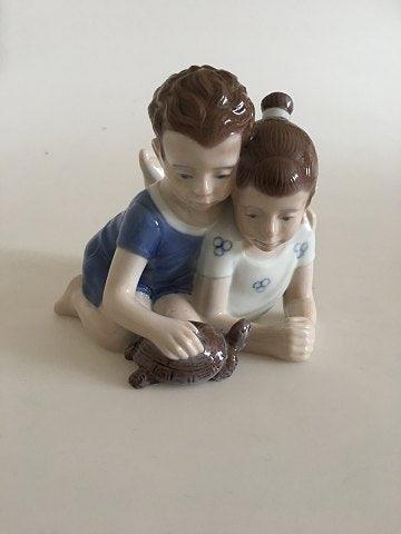 Lyngby Figur Pige og dreng med skildpadde No 4. Måler 15cm x 12cm og er i god stand.