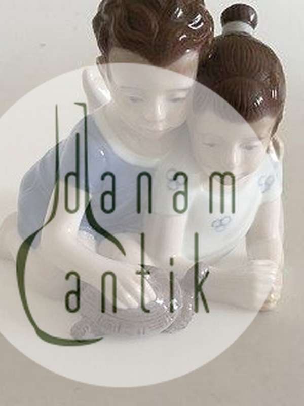 Lyngby Figur Pige og dreng med skildpadde No 4