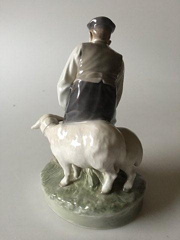 Royal Copenhagen Figur Dreng med 2 får No 627. Designet af Christian Thomsen. Måler 19cm x 11cm, ene får har afslag på øre.