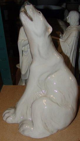 Royal Copenhagen Figur Isbjørn No 825. Måler 29cm x 23cm. Designet af Knud Kyhn i 1907. Anden sortering med lille brændingsfejl.