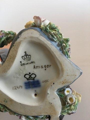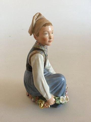 Royal Copenhagen Overglasur Figur Amager Dreng No 12414. Måler 15cm har nogle minimale afslag på blomster.