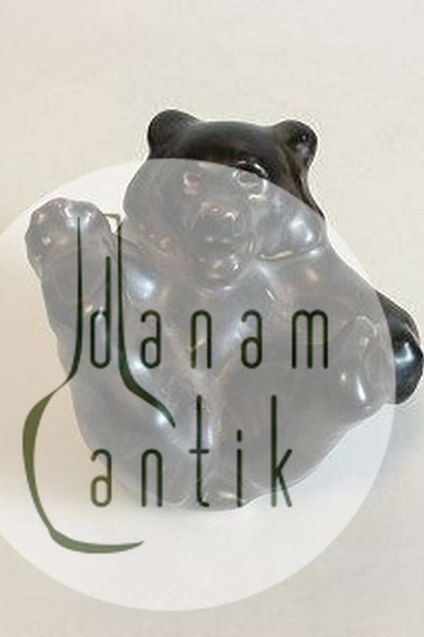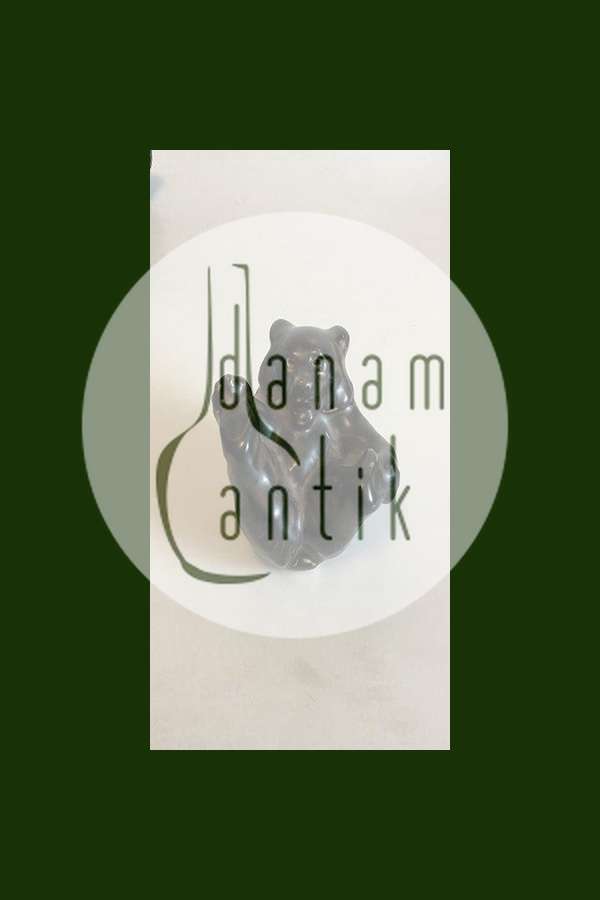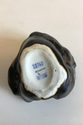 Royal Copenhagen Stentøjsfigur Bjørneunge på ryggen No. 22747. Designet af Knud Kyhn. Måler 7 cm