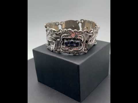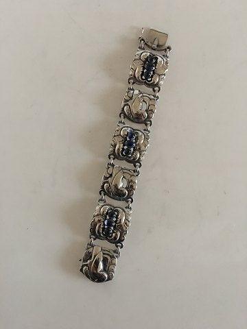 Georg Jensen Sterling Sølv Armbånd No 32 med Syntetisk Safir. Måler 19 cm. Vejer 53,7 gram. Fra efter 1945.
