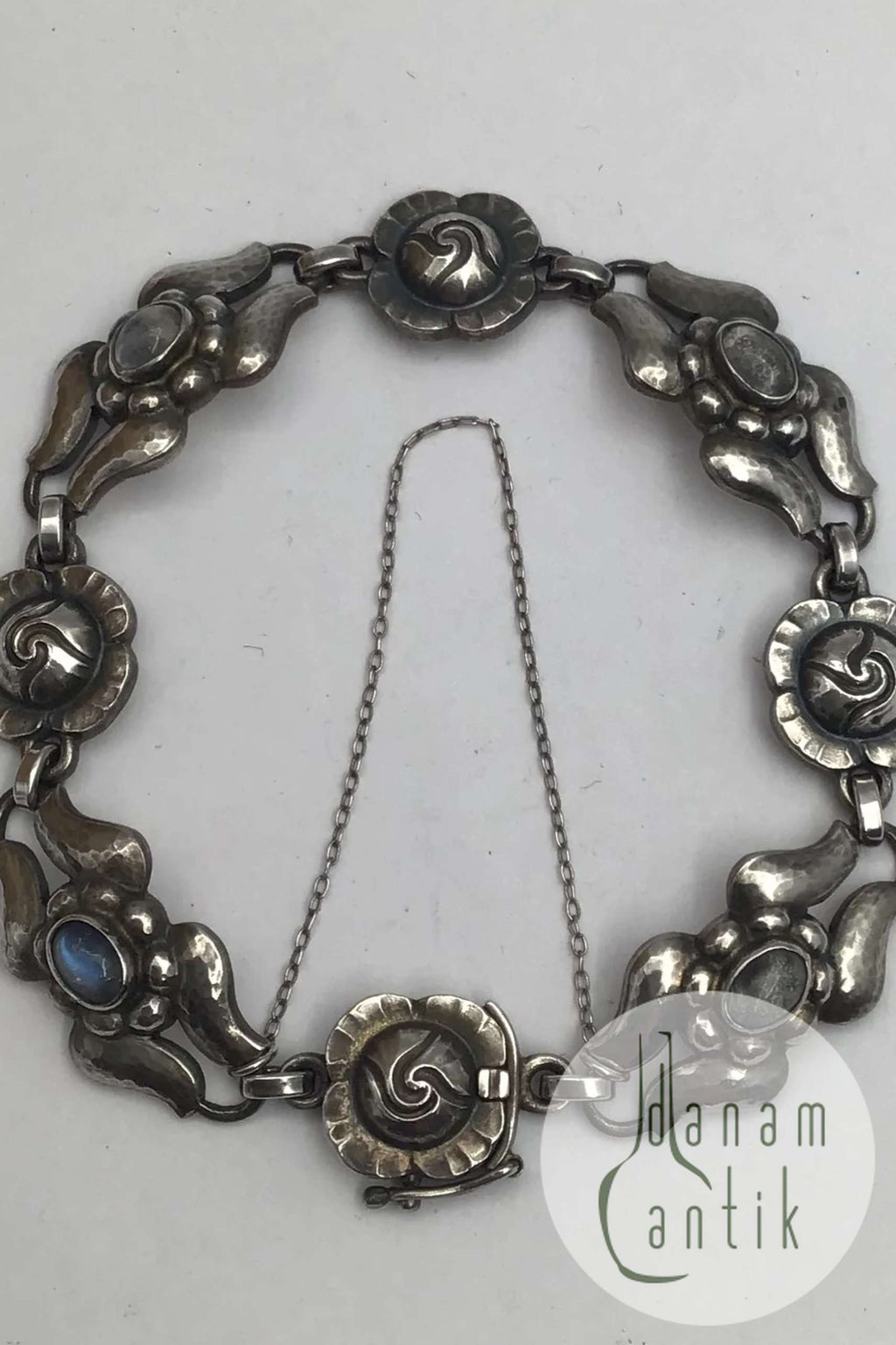 Georg Jensen Sterling Sølv Armlænke No. 18 Månesten Måler 19 cm (7.48 inch) Vægt 22.5 gr (0.79 oz) (Sikkerhedskæde)