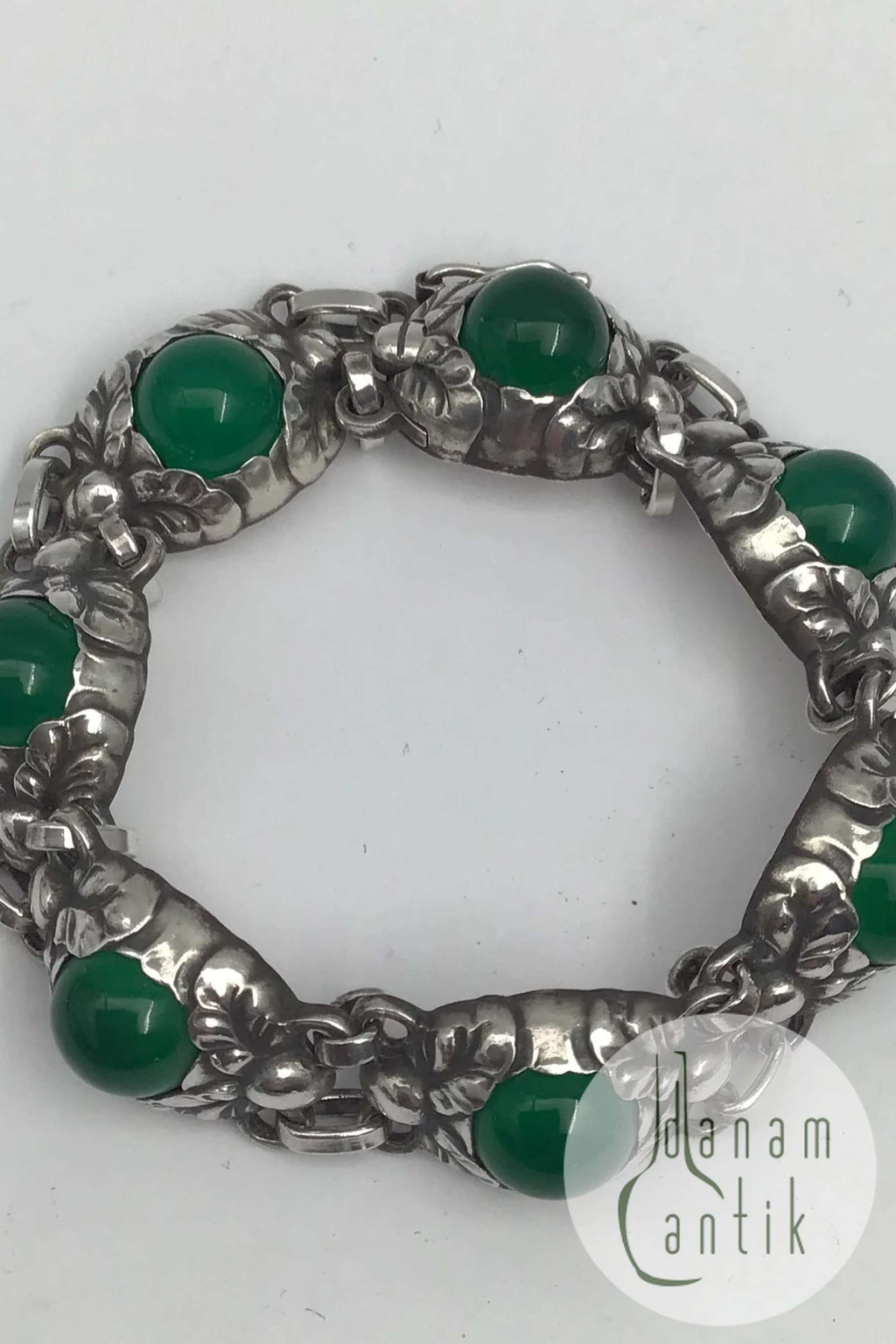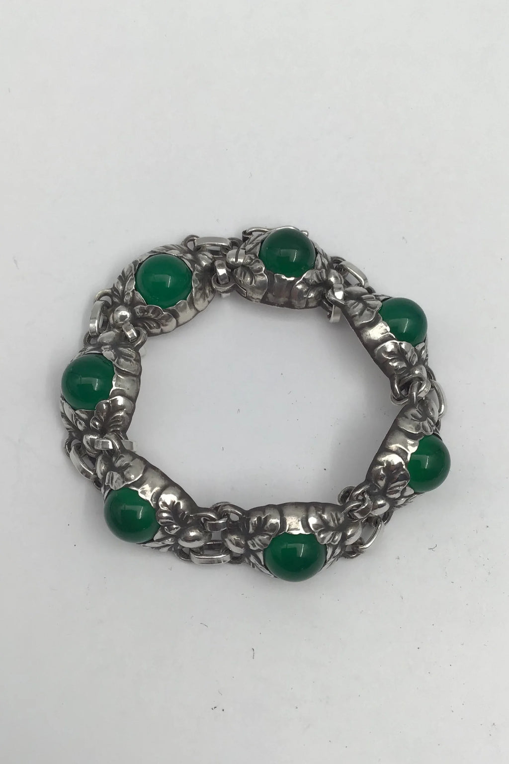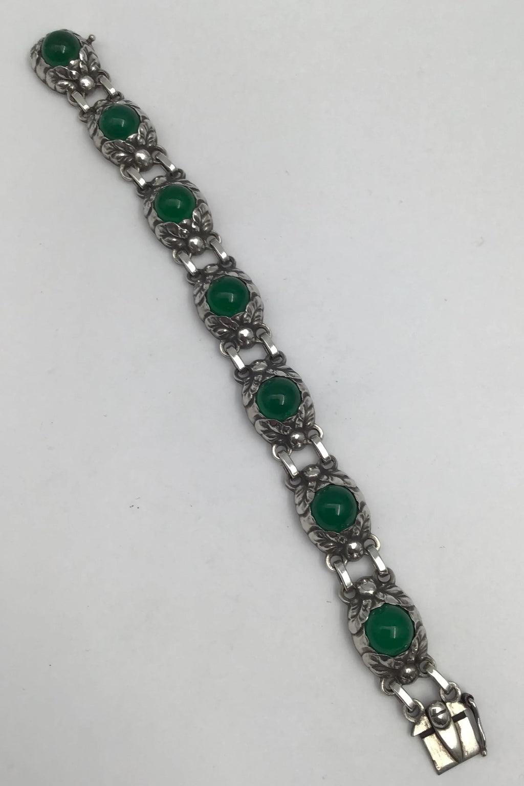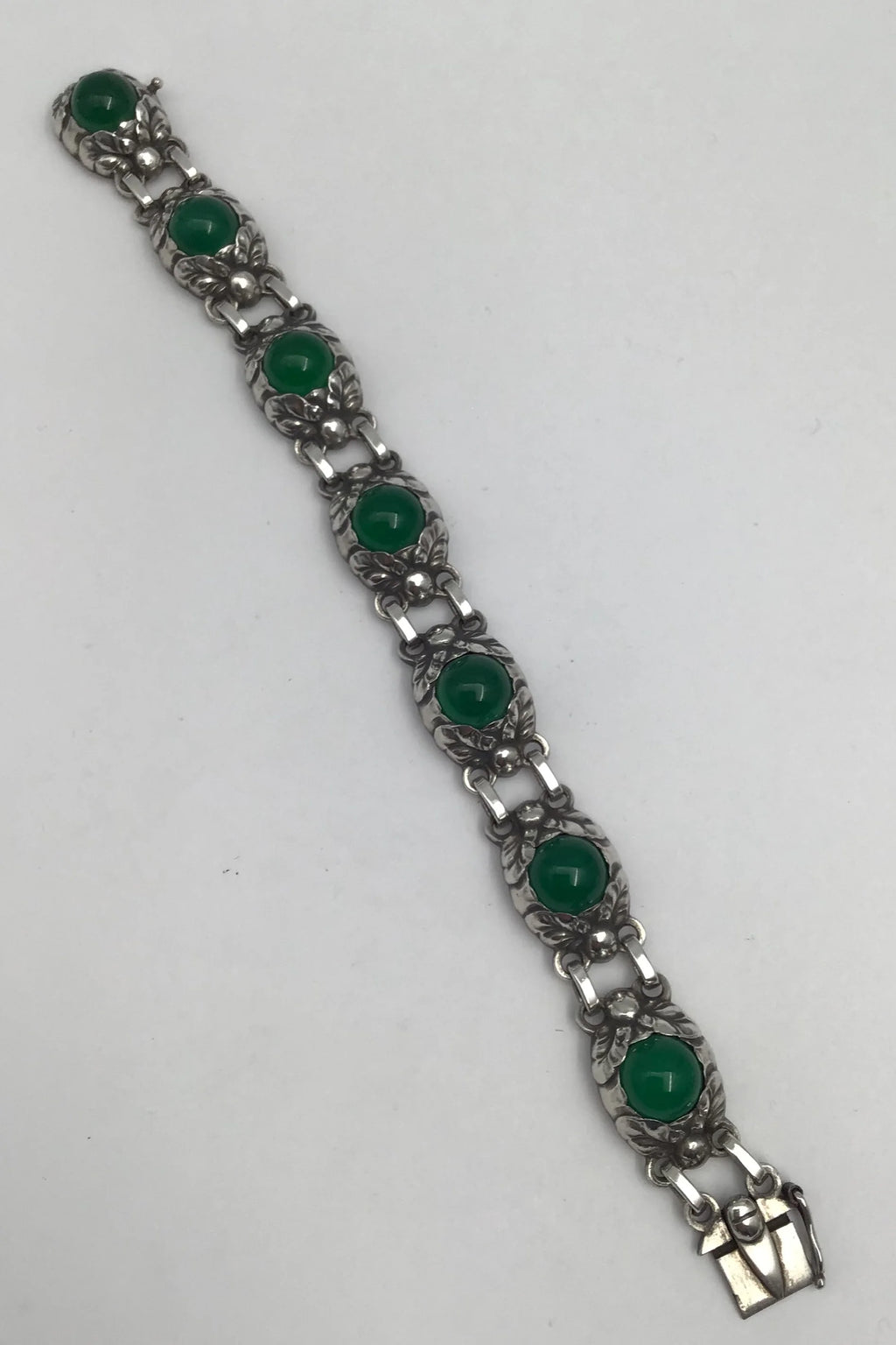 Georg Jensen Sterling Sølv Armlænke No. 57 B (Grøn Agat) Måler L 18 cm (7.08 inch) Vægt 30.57 gr (1.08 oz)