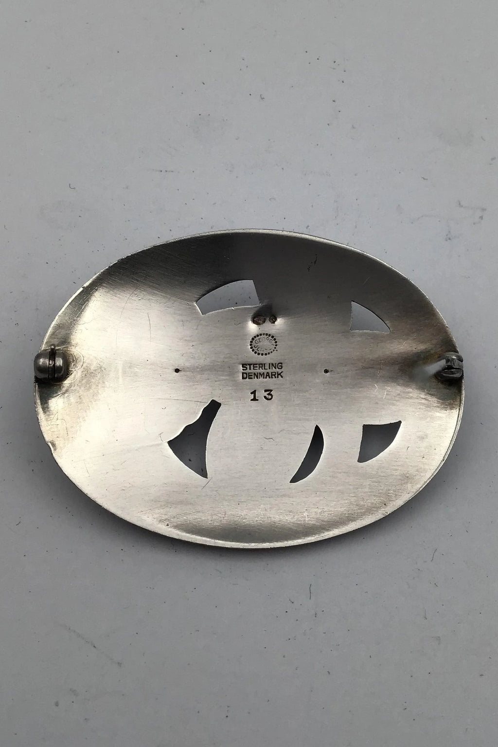 Georg Jensen Sterling Sølv Broche No. 13 Måler 5.2 cm x 4.0 cm (2.04 inch x 1.57 inch) Vægt 15.9 gr (0.56 oz) Svenske Importstempler