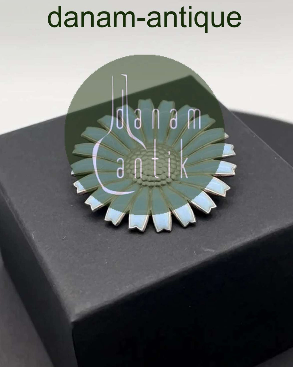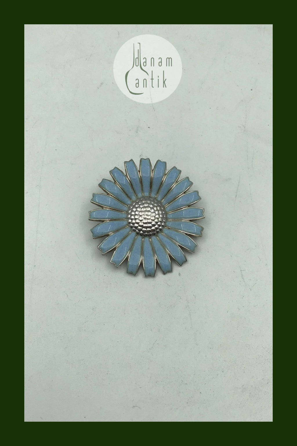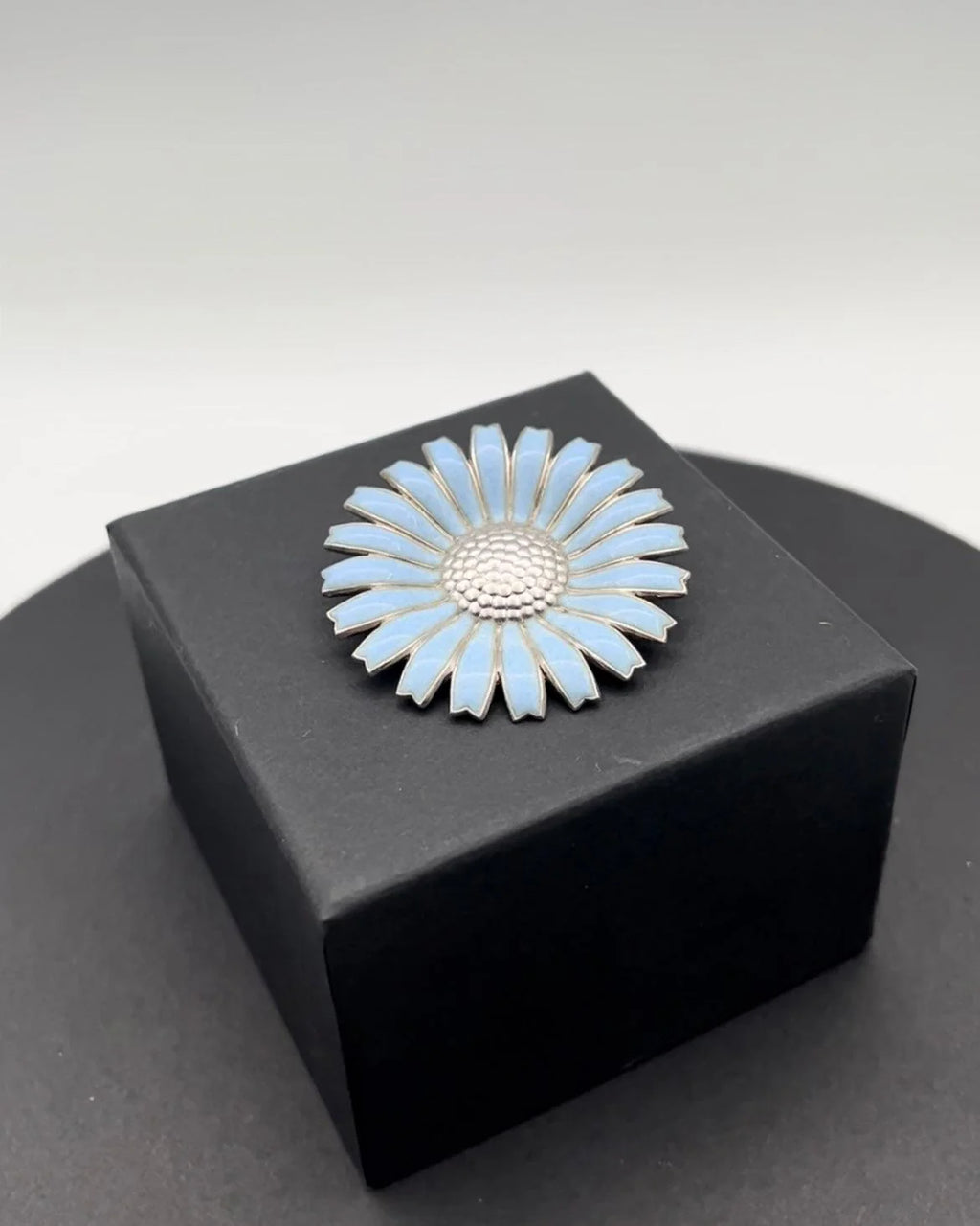 Georg Jensen Sterling Sølv Marguerit Broche, Lyseblå