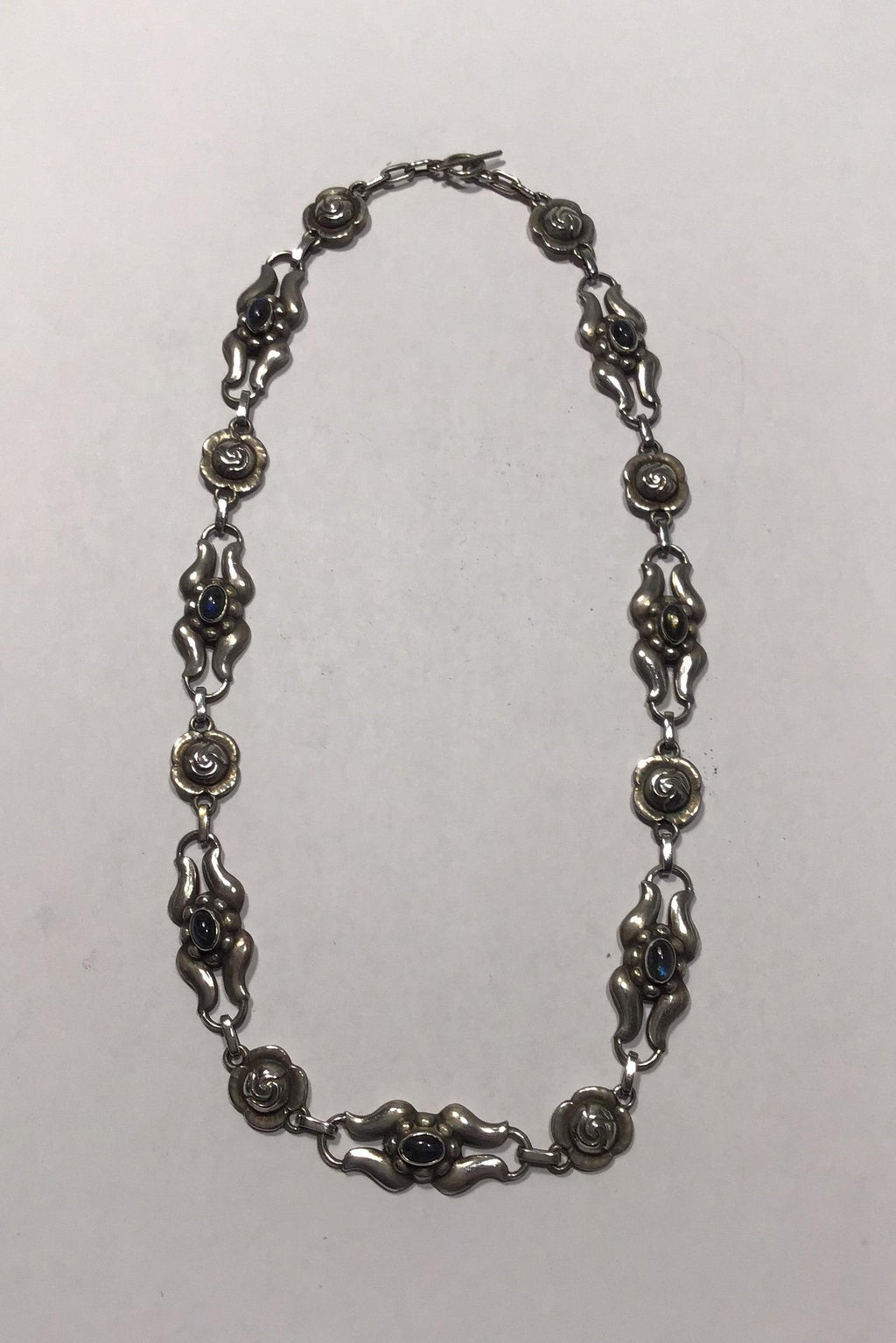 Georg Jensen Sølv Halskæde No. 10 Blå Sten (1915-1927) Måler 42 cm (16½ in) Vægt 30.6 gr / 1.08 oz