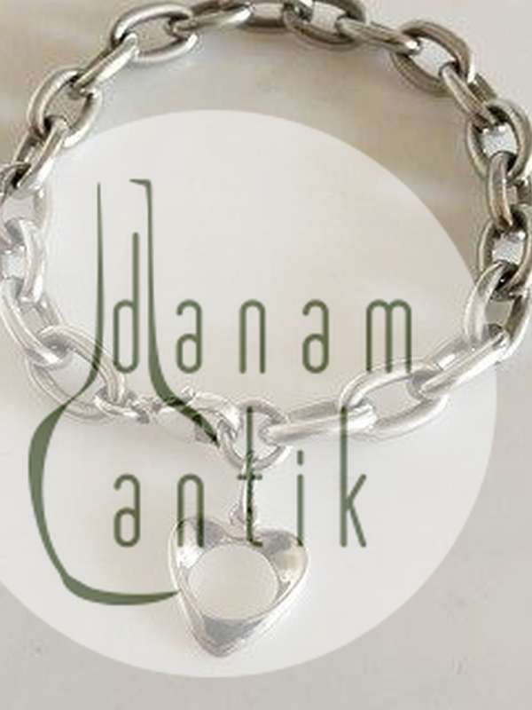 Georg Jensen Sterling Sølv Armbånd med Hjertevedhæng. 20.5 cm L. 0.6 cm B. Vejer 35 gram.