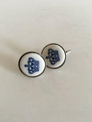Georg Jensen Sterling Sølv Manchetknapper med Porcelæn Knap af Royal Copenhagen. 2.5 cm Ø.