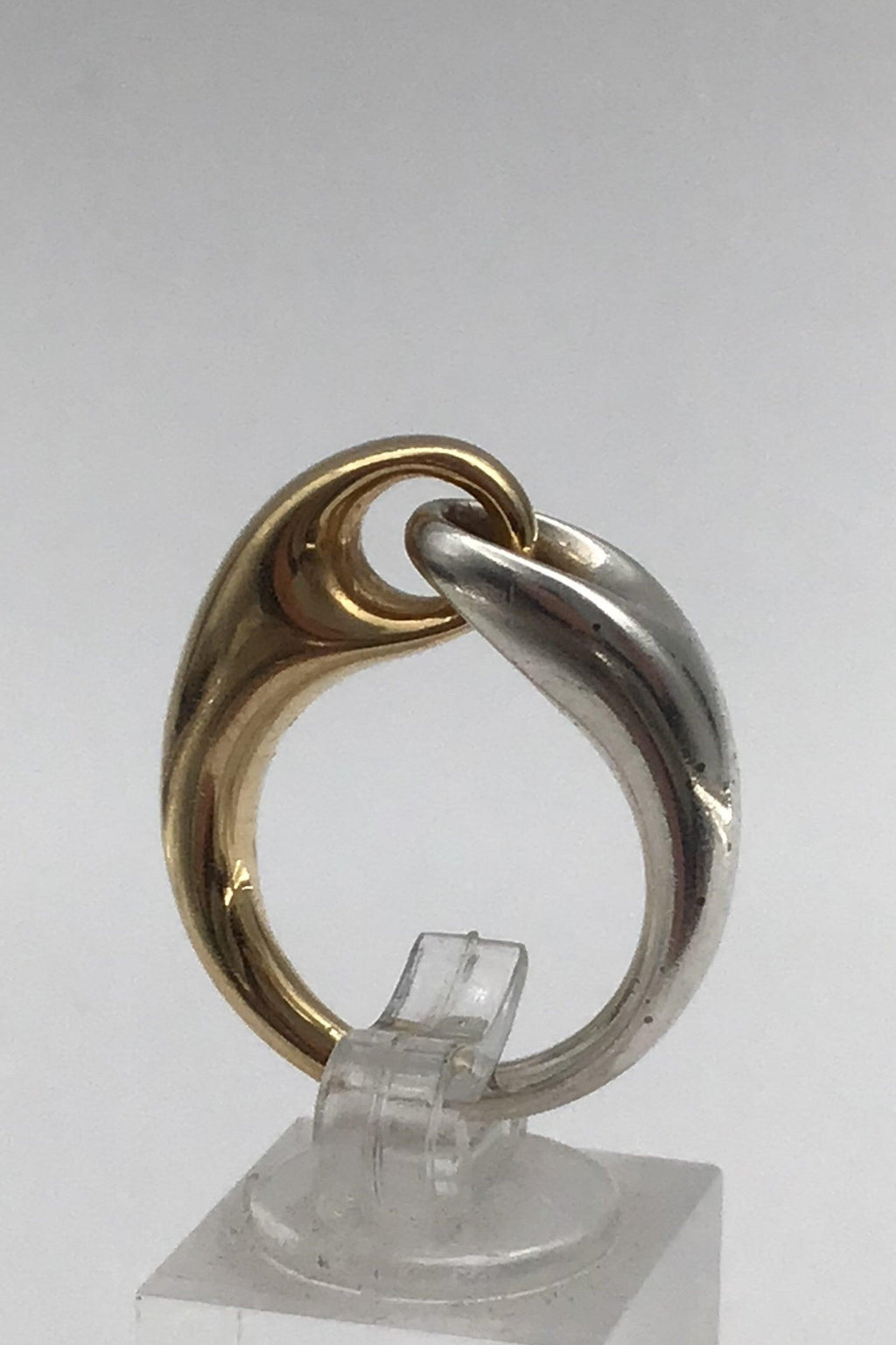 Georg Jensen Sterling Sølv / 18 K Guld Ring No. 652B (stor) Reflect Jacqueline Rabun Måler Ring Str 55 (US 7 1/4) Vægt 11.5 gr (0.41 oz)