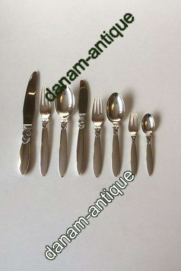 Georg Jensen Kaktus Sterling Sølv Spise og Frokost Bestik Sæt 96 dele