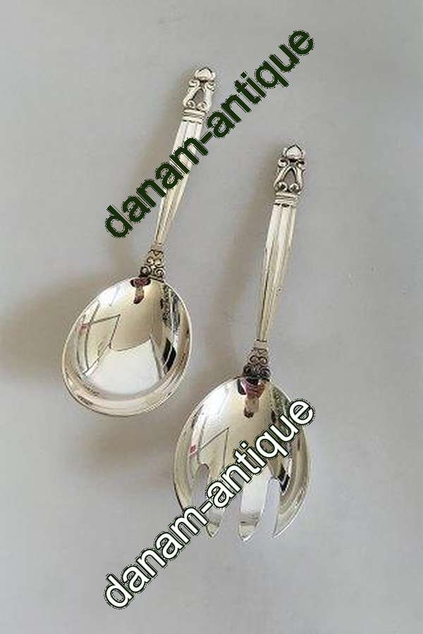 Georg Jensen Sterling Sølv 'Konge' Salat Sæt. 20 cm. Design Johan Rohde.