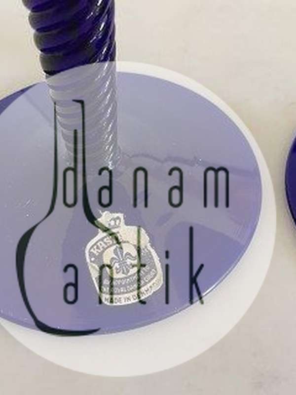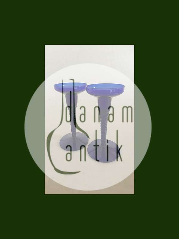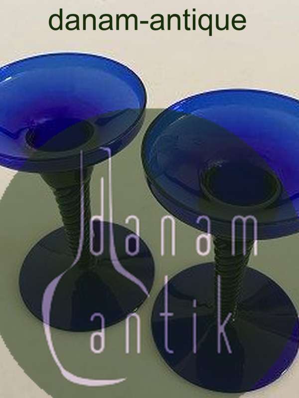 Et par kongeblå Amager / Twist Lysestager fra Kastrup Glasværk.