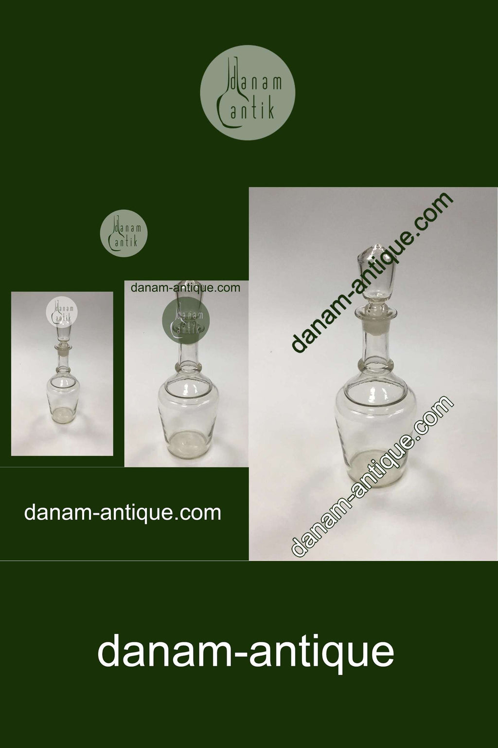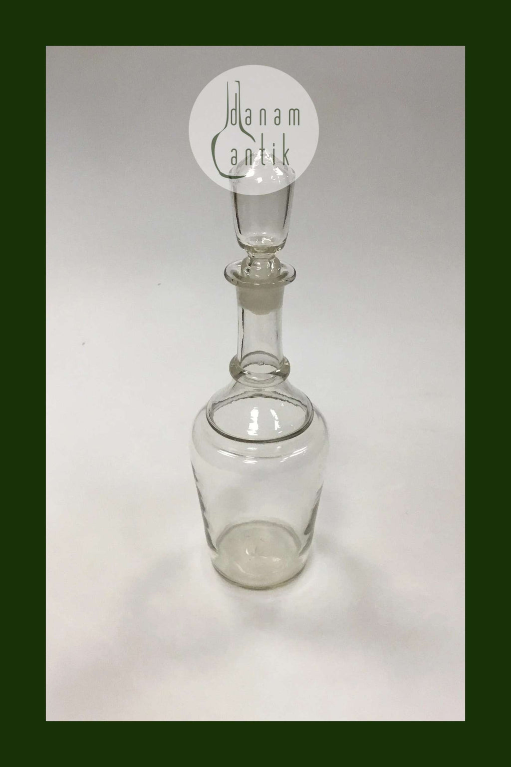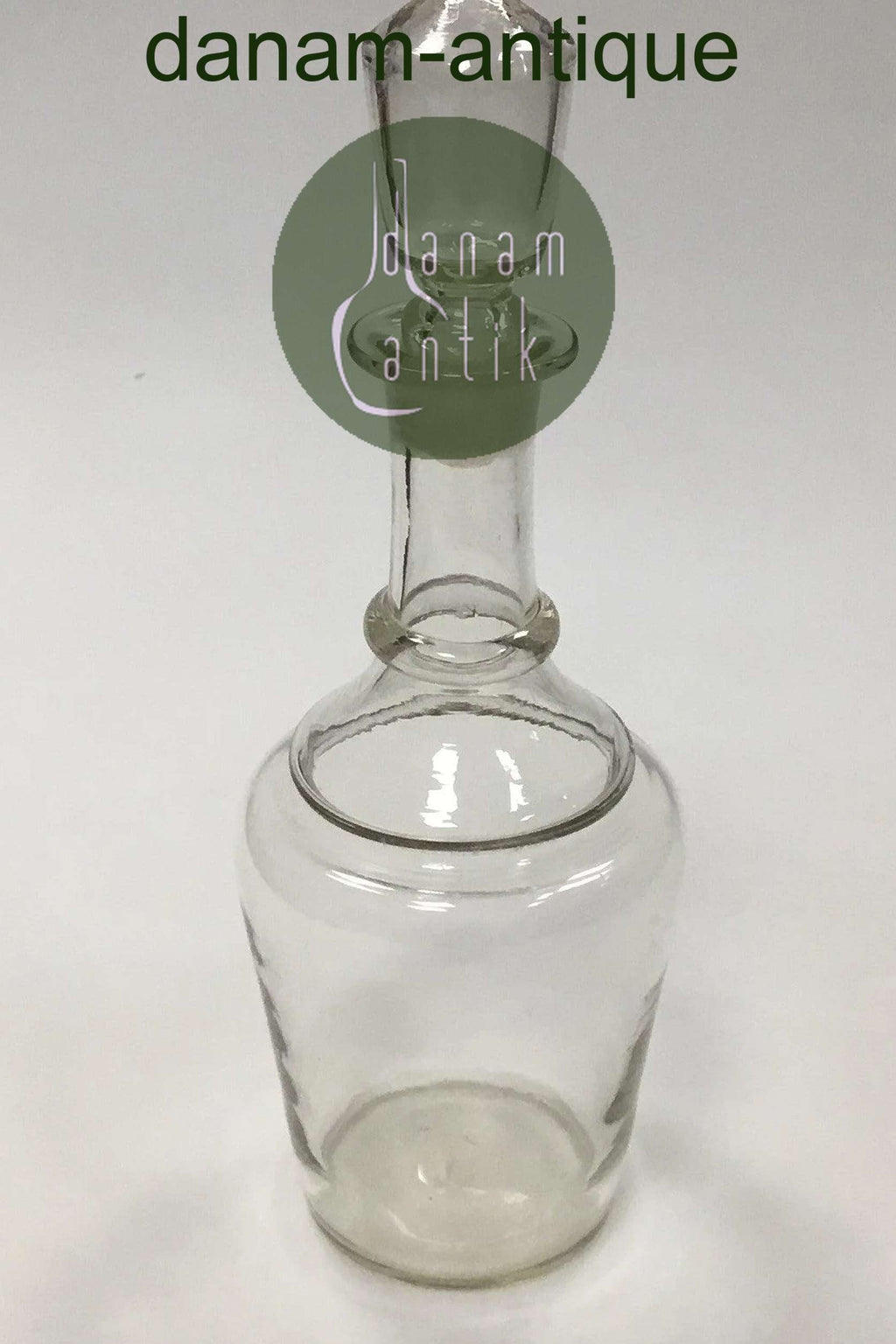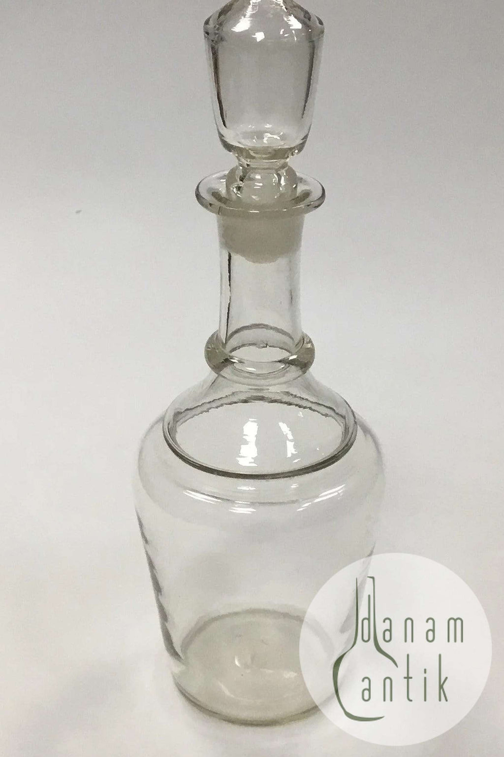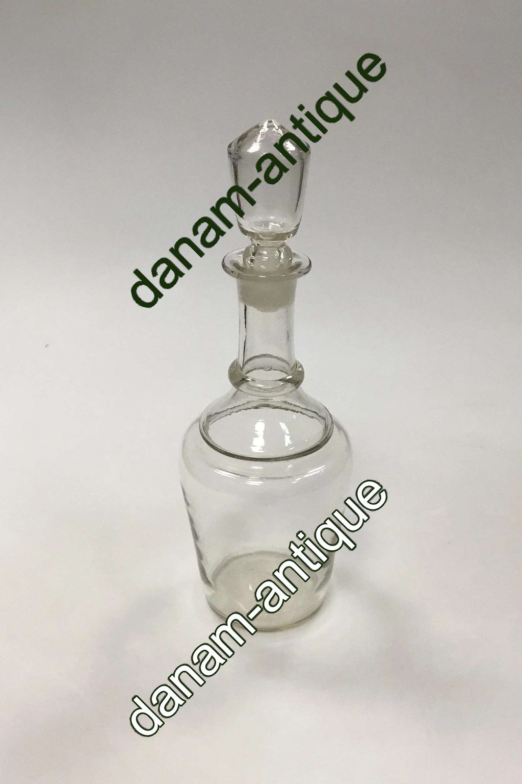 Holmegaard Glaskaraffel cylinderform, rigel om hals, hul prop, knækket af i bunden. Fra slutningen af 19. århundrede. Måler 26 cm ( 10 15/64 in. )