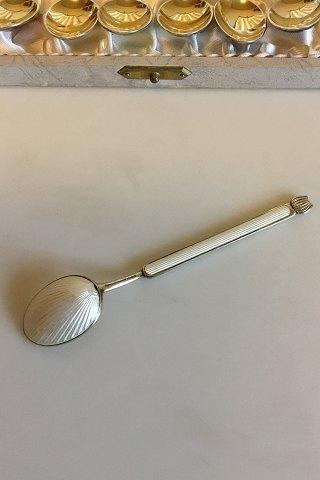 A. Michelsen Sæt af 6 Forgyldte Sterling sølv theskeer med farvet Emalje i æske, plus en ekstra. Måler 10 cm