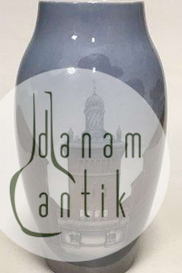 Bing & Grøndahl Vase No 243. Med motiv fra elefantporten på Carlsberg. Måler 24,5 cm