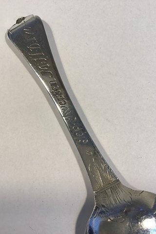 Dansk Sølvske 1704(1706/1777) Utallige Ejerinitialer Bagside af laf med samtidig reparation/forstærkning L 18.5 cm