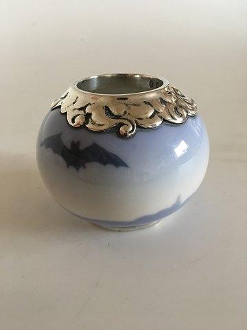Royal Copenhagen Art Nouveau Vase No 225/42A med Flagermus motiv A. Michelsen Sølv Montering. Vasen har en lille hårstreg (se billede) ellers fremstår den pæn. 6.5 cm Høj.