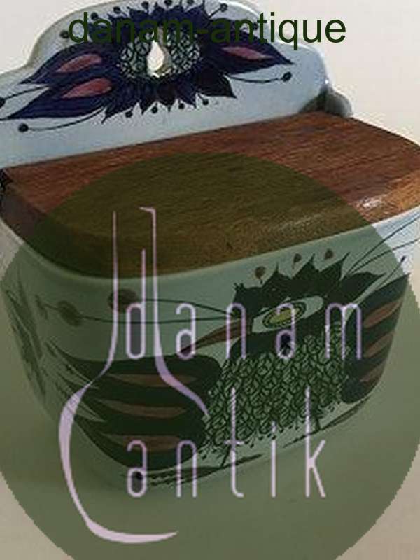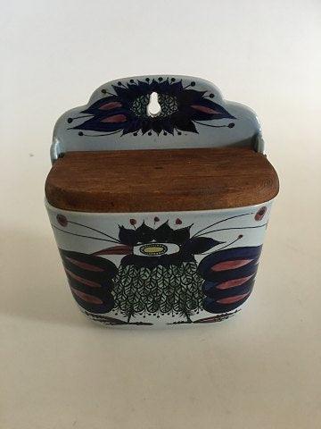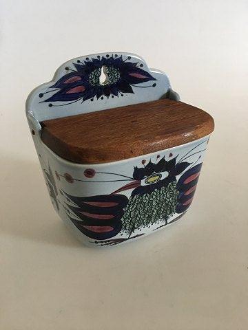 Royal Copenhagen Fajance Saltkrukke med Trælåg No. 180/261 til Vægophæng. I god stand.
