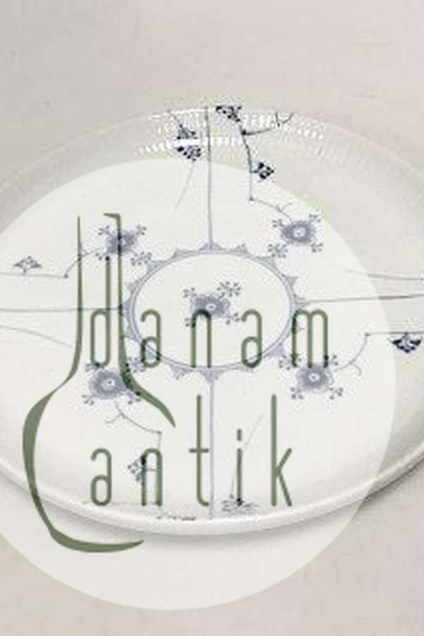 Royal Copenhagen Musselmalet Riflet Stort rundt fad No 109. Kanten er slebet af