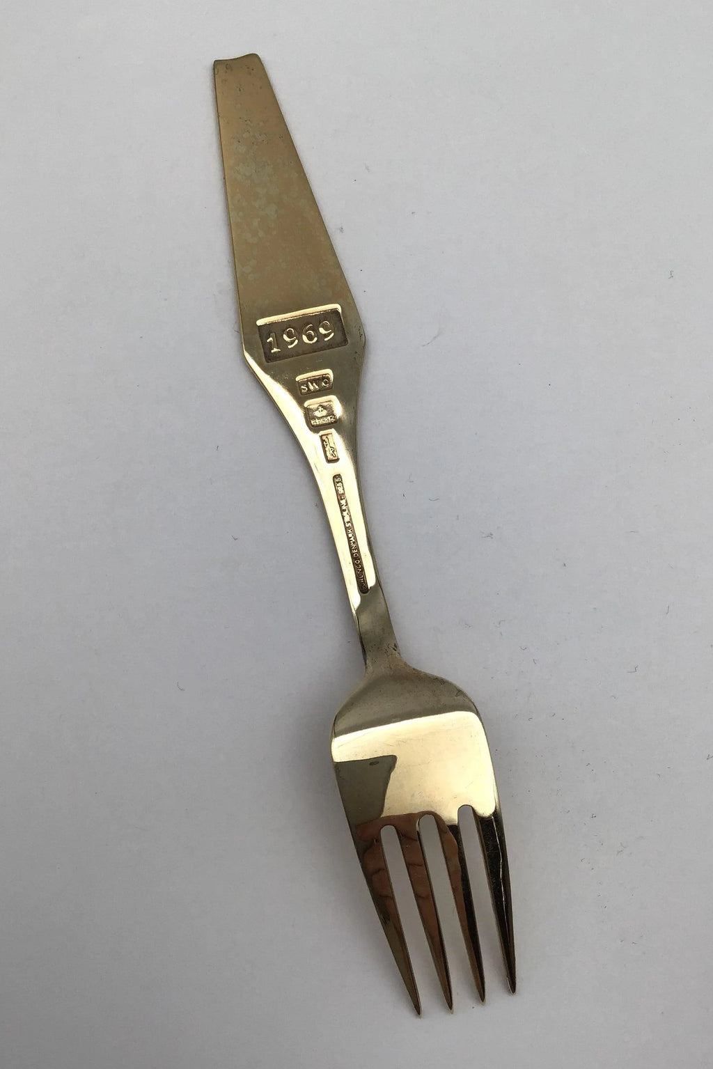 Sorenco Julegaffel 1969 af forgyldt sterling sølv med emalje.