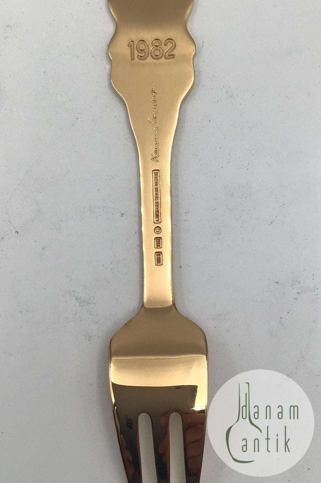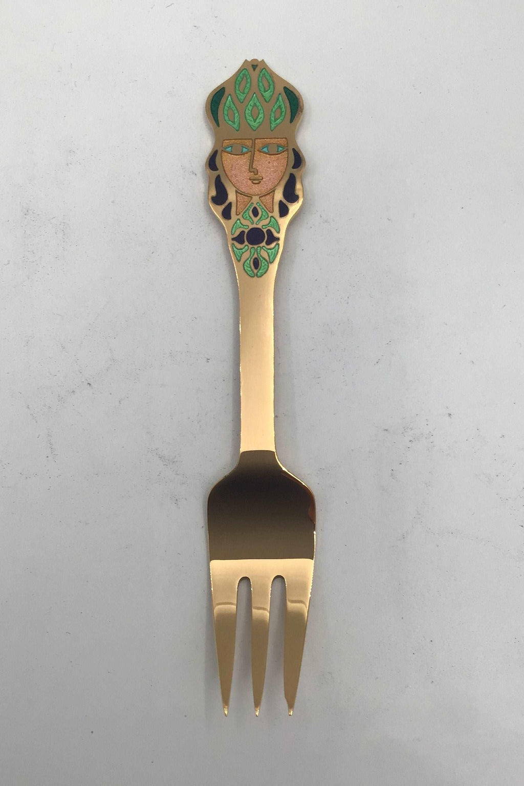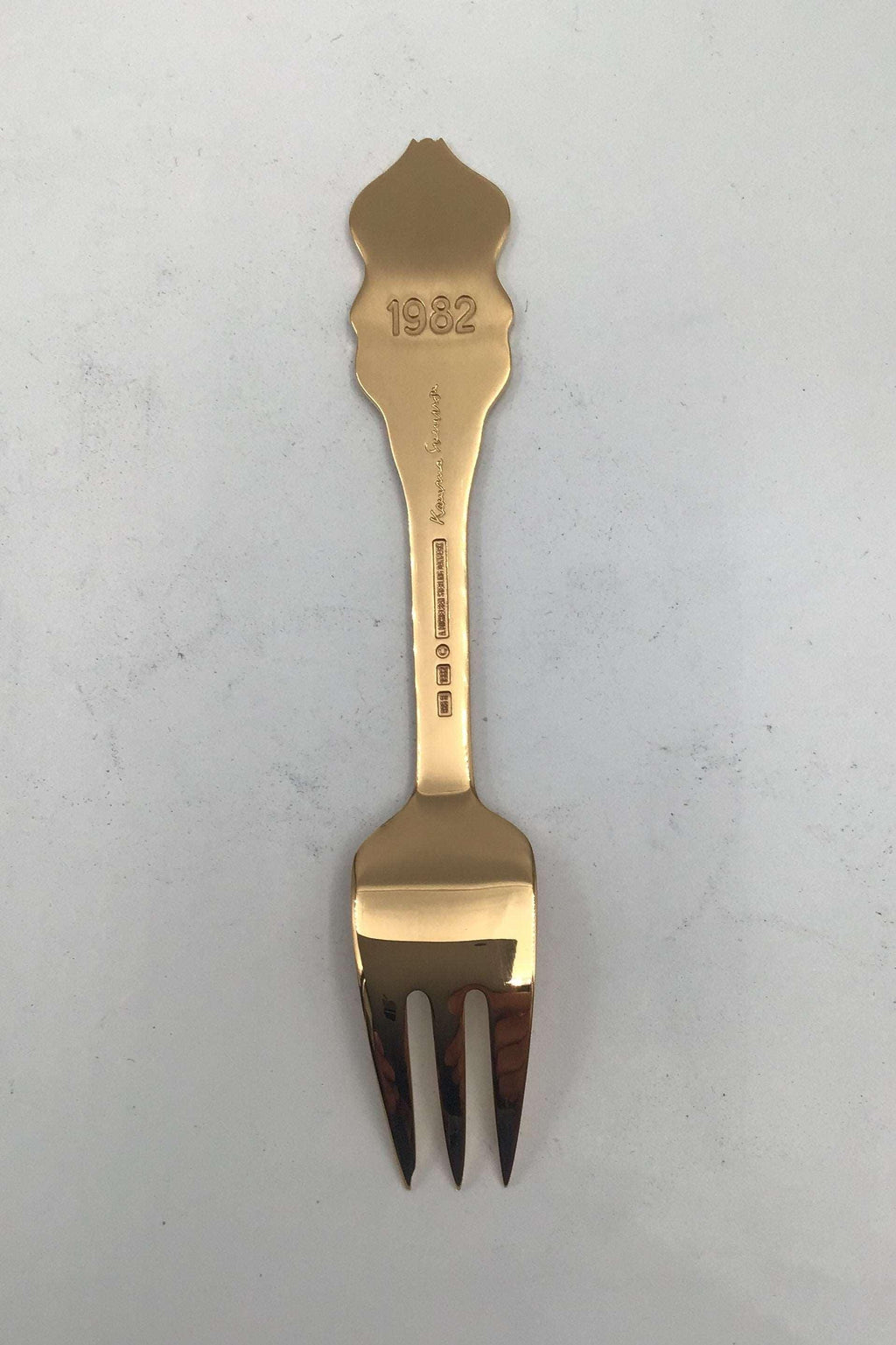 A. Michelsen Julekagegaffel 1982 I forgyldt Sterling Sølv med emalje